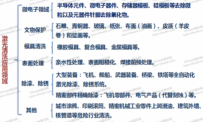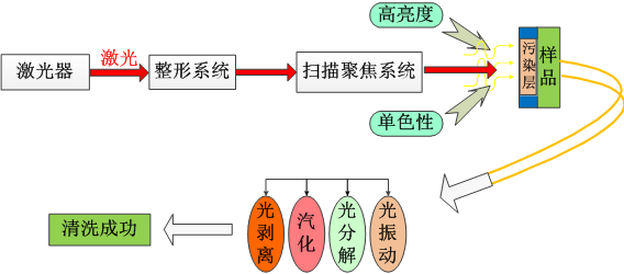 今的制造業(yè)發(fā)展迅猛,各種機(jī)械、電子產(chǎn)品的應(yīng)用規(guī)模均大為增長。但這些設(shè)備在裝配之前以及運行一段時間之后,都需要進(jìn)行一些維護(hù),其中就包括對部分材料或部件進(jìn)行清洗。傳統(tǒng)的清洗工藝如機(jī)械摩擦清洗、化學(xué)腐蝕清洗、強(qiáng)力沖擊清洗、高頻超聲清洗等,非常耗時,無法實現(xiàn)自動化,而且通常對環(huán)境造成有害影響。同時,也沒有測量清潔效果的可靠方法。與之相比,激光清洗具有無污染、無消耗品、成本低、效率高、無接觸、無應(yīng)力、無損傷、可控性好、可選區(qū)精密清洗、可清洗難以到達(dá)的危險的區(qū)域等優(yōu)點,被認(rèn)為是未來最可靠、最有效的解決清洗問題的辦法。
